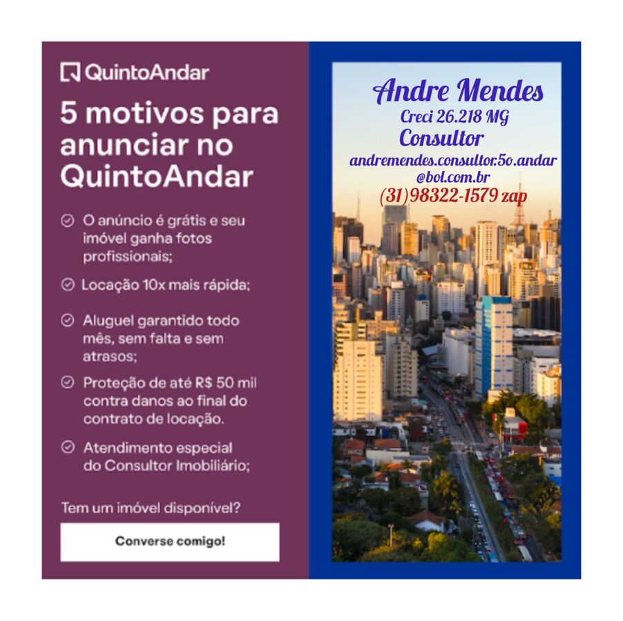 Através da QuintoAndar, que é um dos maiores portais de Venda e Locação de Imóveis da América Latina, você terá a possibilidade de vender ou/e locar seu imóvel rapidamente e COM FOTOS PROFISSIONAIS.